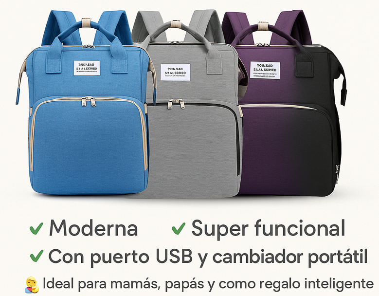 Lleva todo lo de tu bebé en un solo lugar, cómodo y practico! mas de 15 bolsillos para guardar lo que necesitas. Es la pañalera que necesitas.